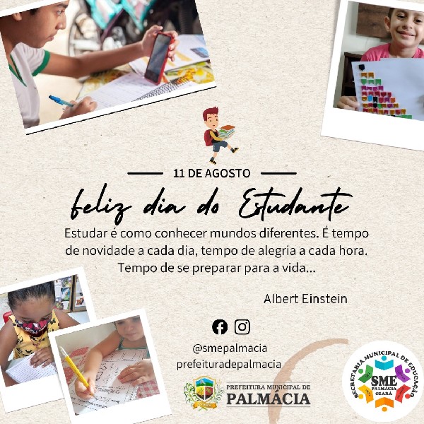 A secretaria Municipal de Educação hoje quer se congratular com você estudante.